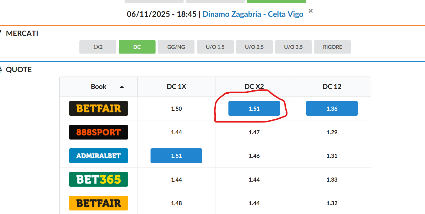 lo sceriffo pasquale79167 onestamente ti sconsiglio di utilizzare il mercato DC dell'exchange. È sempre più sconveniente rispetto a bancare 1X2.